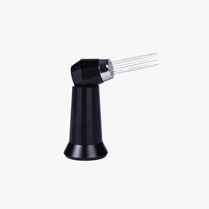 The Budan WDT tool features stainless steel needles in a black anodized base. Breaks up coffee clumps and distributes grounds evenly. Essential for minimizing channeling and improving extraction.