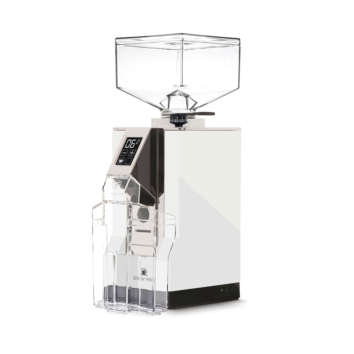 Brew your morning cup better than that corner cafe with the Eureka Brew Pro Coffee Grinder. Designed from the ground up just for drip coffee, the Brew Pro packs in a stack of features that make it a joy to use in day-to-day operation. A calibrated single rotation grind adjust and custom 55mm brew burrs make dialing in your filter coffee a breeze. Not that you’d notice, with the Pro’s sub 5-second grind time and sound-insulated case—it’s easy to miss. The Brew Pro design is finished with a dual-function timer, tritan plastic for the bean hopper and catch bin, and a nifty grind system that starts with a single tap.
