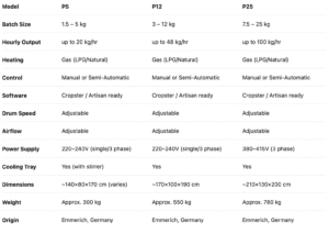 Whether you’re running a boutique roastery or scaling to full production, the P5, P12, and P25 offer unmatched flexibility, precise control over roast curves, and seamless integration with digital roasting software.